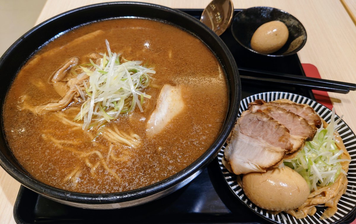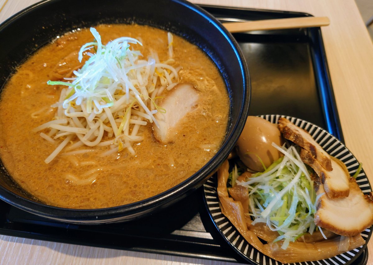 #もちもちの木 に行きました!✨ 🍜味噌ラーメン  🐷🥚全部のせオプション(小皿のもの) 美味しかったのですが、醤油ラーメンは1玉or2玉を選べるのに、味噌ラーメンは1玉しか選べないらしい…(なんで?🤔) pic.x.com/aRtJrO7nIm