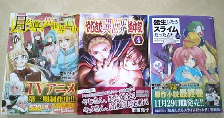 根を詰めすぎたので小休止して異世界新刊タイム☺️ 大好きなシリーズたち やじきたコンビにはもう会えないと思って泣いていた一人なので、異世界ドハマリ大作としてカムバックしてくれて狂喜乱舞です(*´ヮ`)~3 #月が導く異世界道中 #やじきた異世界道中記 #転生したらスライムだった件 pic.x.com/Yg4Fix7xhp