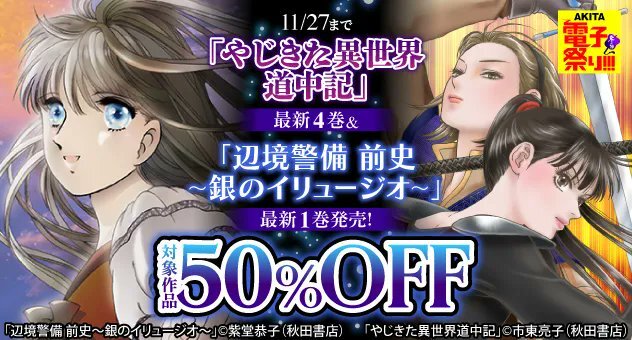 【電子書籍】 11/27迄📢 ⛄2025年度AKITA電子祭り冬の陣⛄ 「#やじきた異世界道中記」最新4巻&「#辺境警備 前史~銀のイリュージオ~」 最新1巻発売❗️ 50%OFFキャンペーン✨ 話題コミックが50%OFFに✨ ぜひお見逃しなく🎵 詳細🔽 melonbooks.co.jp/cplus/tags/ind… pic.x.com/6fjGt6ehGu