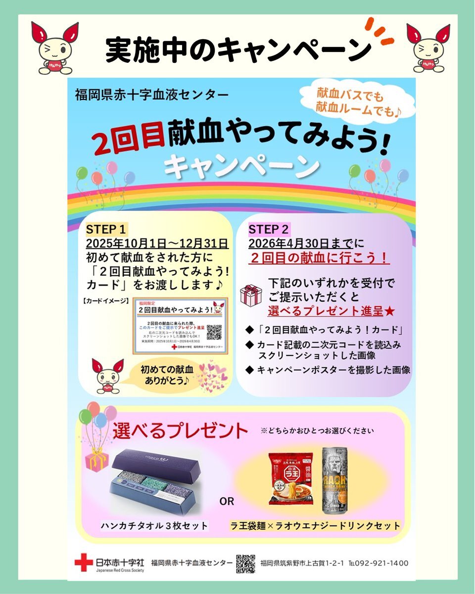 2025年11月の献血 10月末にキャナルシティから引越しされました。 イオンモール香椎浜内にある 献血ルーム香椎浜 に来てみました〜 #献血 #日本赤十字 #福岡県赤十字血液センター #やってみらん献血 #缶バッチ #献血ルーム香椎浜 pic.x.com/s5YT9vtdYQ