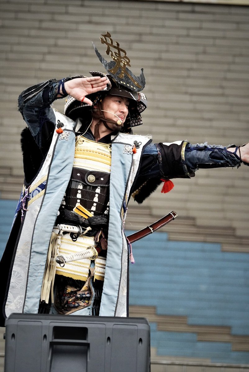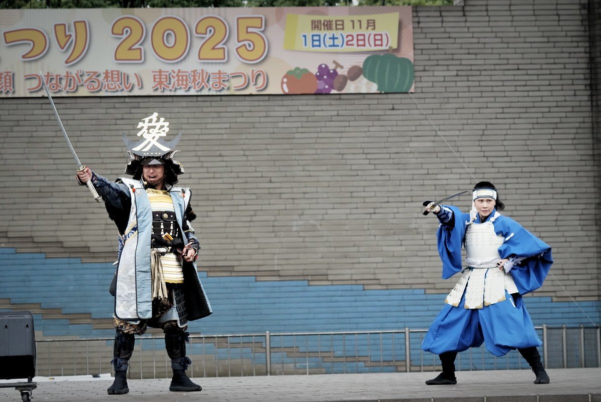 20251102 東海秋まつり2025 米沢との姉妹都市25周年記念という事で、やまがた愛の武将隊さんの兼続様と火焔様が東海市に!! #やまがた愛の武将隊 pic.x.com/Pdodaks11L