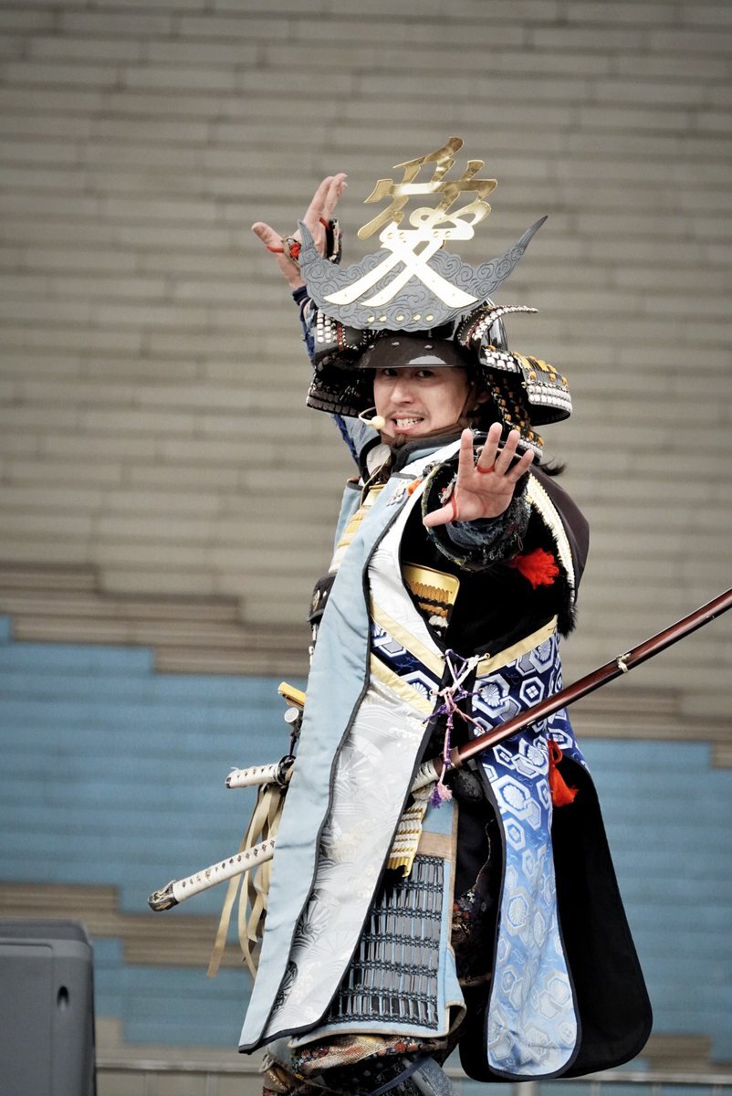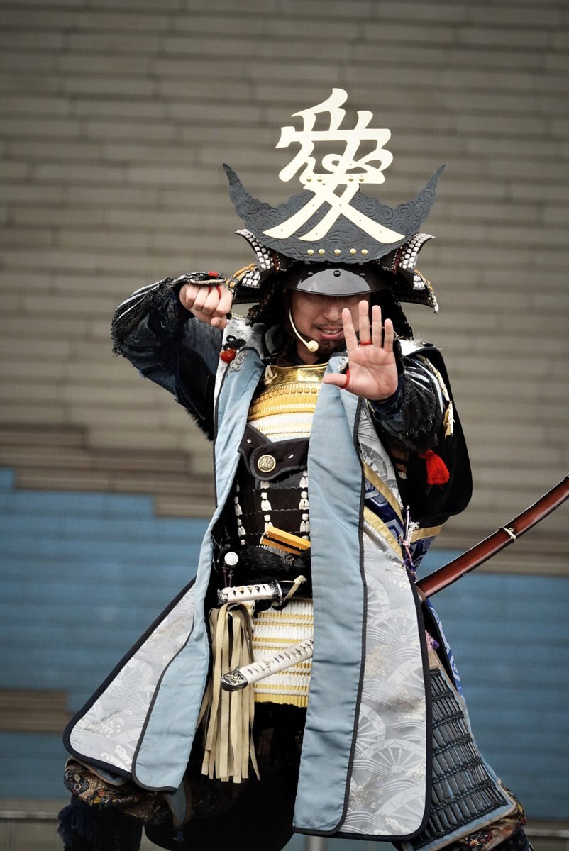 #やまがた愛の武将隊 とても広いステージで観覧客も多く、土地柄的にアウェイだったけど、堂々と演武してる姿はさすが兼続様って感じでした。 2025.11.1 東海秋まつり pic.x.com/f60UkCszDU