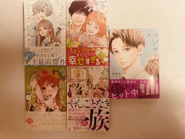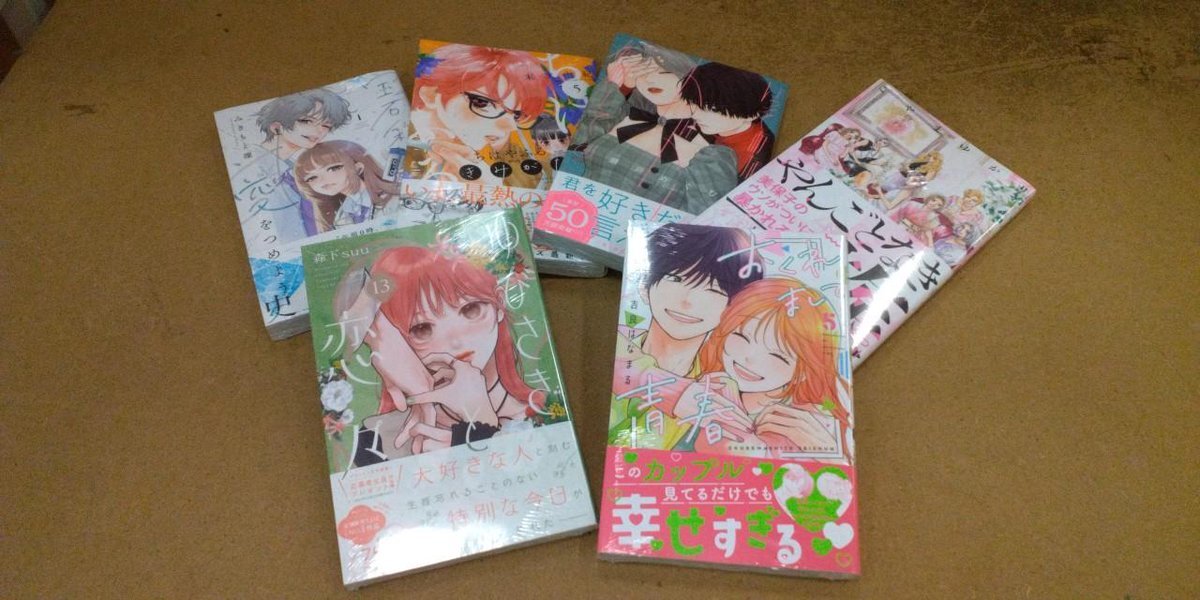 本日の新刊コミック(少女)です😘 #宝石箱に愛をつめよう (1) #おくれまして青春 (5) #ゆびさきと恋々 (13) #やんごとなき一族 (19) #恋スルシカク (3) 皆さまのご来店をお待ちしております。 #自遊空間 #荻窪 pic.x.com/PEJZHtUaMy