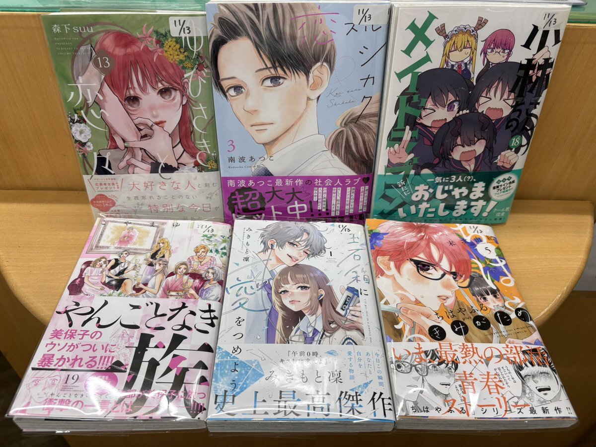 【📚本日入荷📚】 #恋スルシカク(3) #ちはやふる plus きみがため(5) #やんごとなき一族(19) #ゆびさきと恋々(13) #宝石箱に愛をつめよう(1) #小林さんちのメイドラゴン(18) 本日は大人気漫画🎀ゆびさきと恋々💐含む6冊入荷しました✨来てね〜✨ #三軒茶屋 #漫画喫茶 #今日買った漫画 pic.x.com/bGupq4h9t6