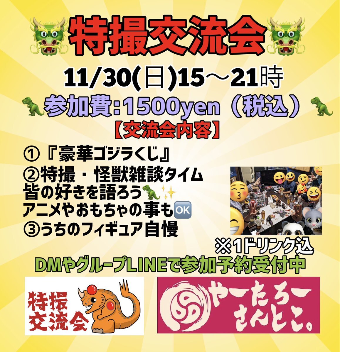 #特撮交流会 11/30(日)15-21時迄 参加者募集中🦖✨ 特撮や怪獣好きな方で仲間作りや 語り合いたい方はうちに遊びにおいで😁✨ 『#豪華ゴジラくじ』 まだ大当たり🎯残ってます😆 残31口🦖 予約は当垢までDMまたは返信ください👍 #やーたろーさんとこ#特撮 #ハニクス #ゴジラ #ウルトラマン pic.x.com/cYdHoUnQzy