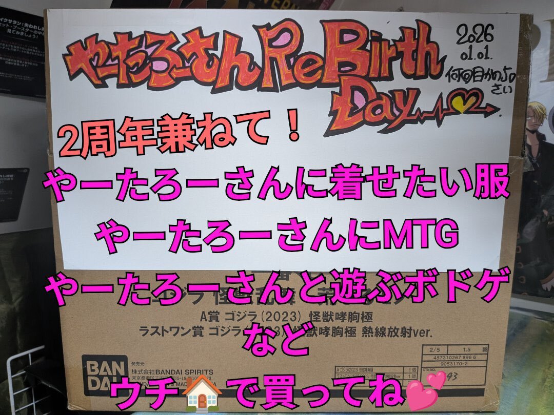 やーたろーさんに🎁しよう🦖✨ 『着せたい服』 『一緒に遊びたいボドゲ』(僕も一緒に遊ぶ) などなど‼️ やーたろーさんのお誕生日は1/1元旦🎍 皆でプレゼント🎁BOXにうちでなんか買って入れてあげよう😁✨ #やーたろーさんとこ。 #特撮 #ハニクス #ゴジラ #ウルトラマン #仮面ライダー #ガンダム