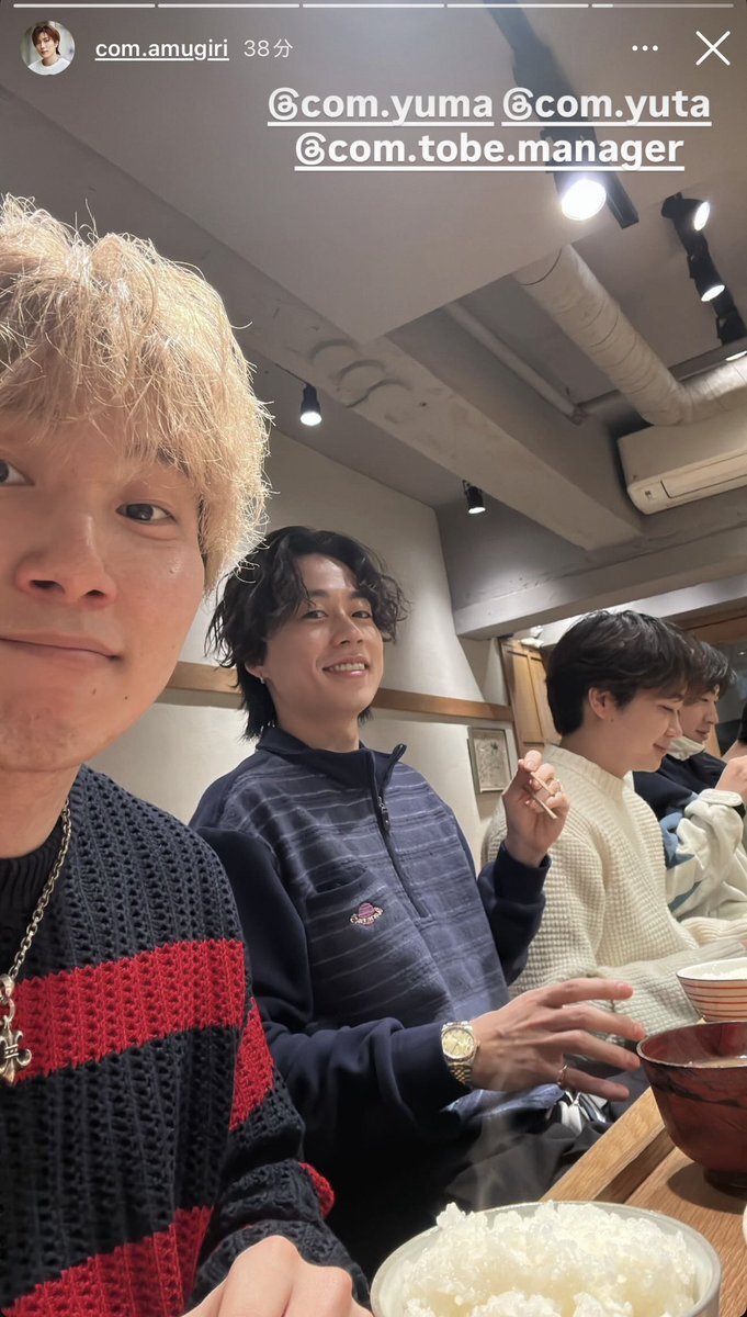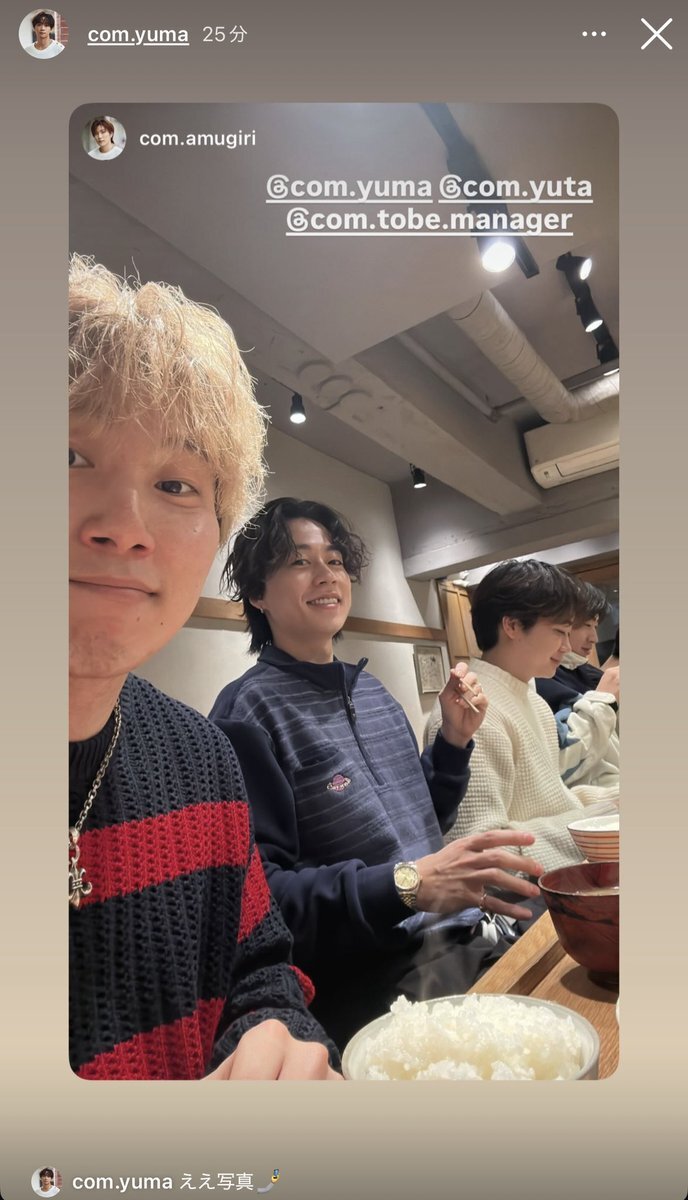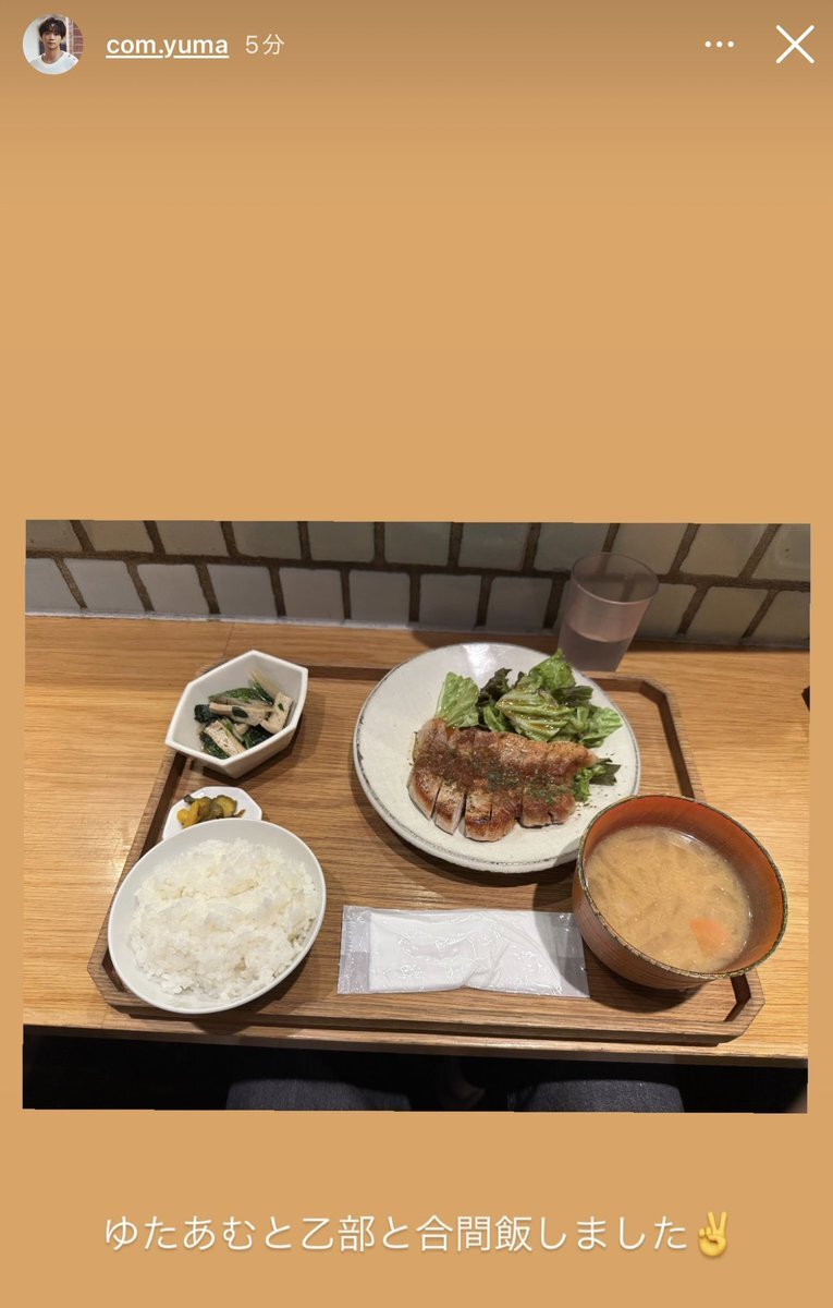 あっちゃん、ゆうまくんストーリーより 美味しそう🤭 ゆうまくん髪型自分でやったのかな?🤭 いい感じ💙 ゆたゆまあむ💚💙🧡 3人での撮影だったのかな?? 楽しみですね✨ #コムドット #ゆうた #あむぎり #ゆうま pic.x.com/GwKhJ47Fik