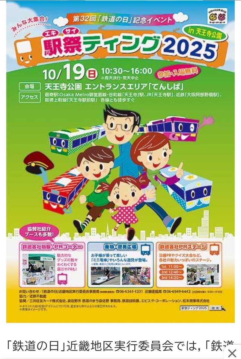 おはようございます🌅 今日は画像のイベントに行く予定ですが鉄道の方は環状線パレードラッピング外れたから行くの辞めるかも😊 本日もよろしくお願いします🙇‍♂ #ゆっくり楽しく今を生きる #関西盆クラ市 #駅祭ティング pic.x.com/VIxL0CKGRD