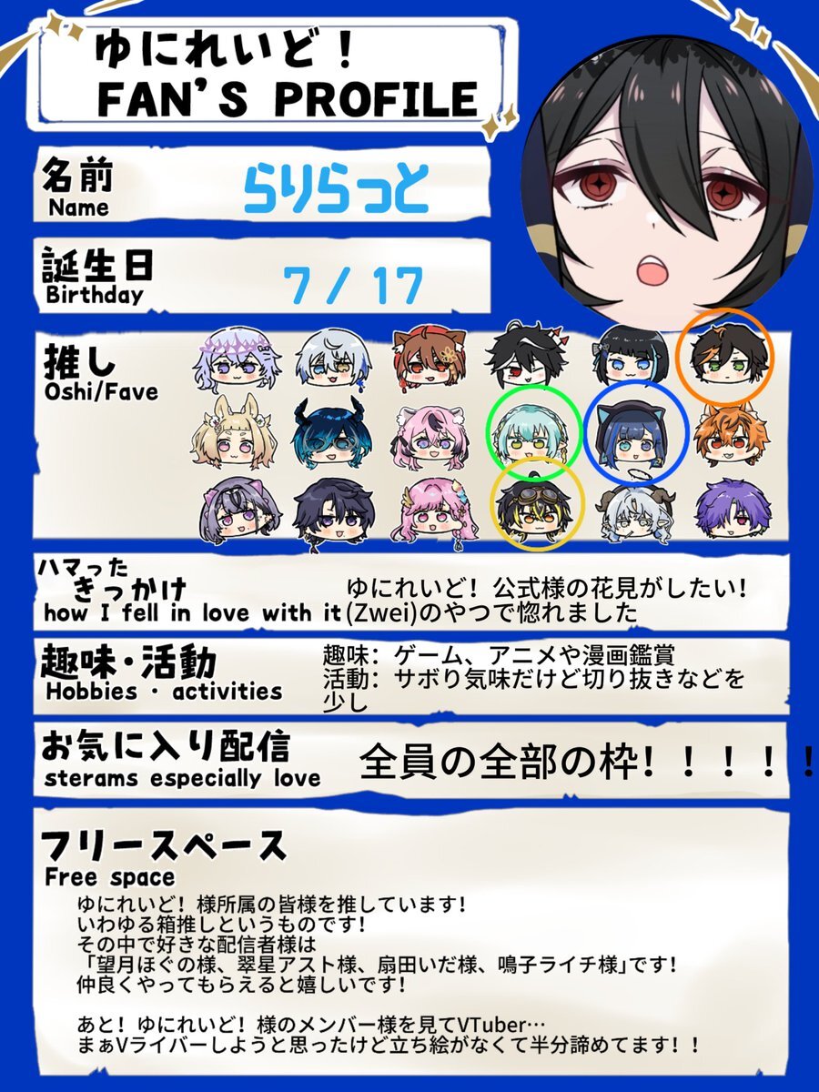 3期生のデビューに合わせて更新しました! よろしくお願いします~! #ゆにれいどファン自己紹介カード #ゆにれいど好きさんと繋がりたい pic.x.com/VpmqMBNfEC