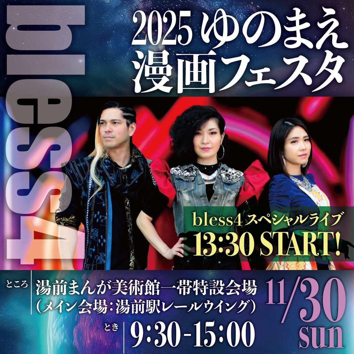 【お知らせ📢】 11/30(日)「2025ゆのまえ漫画フェスタ」に bless4が登場します🎤🔥 自分達の全力でお届けします✨ ぜひ一緒に盛り上がりましょう! 🕐13:30 START 📍湯前まんが美術館一帯 特設会場 #bless4 #ゆのまえ漫画フェスタ #ライブイベント town.yunomae.lg.jp/kiji0033077/in… pic.x.com/baoDtT78V2