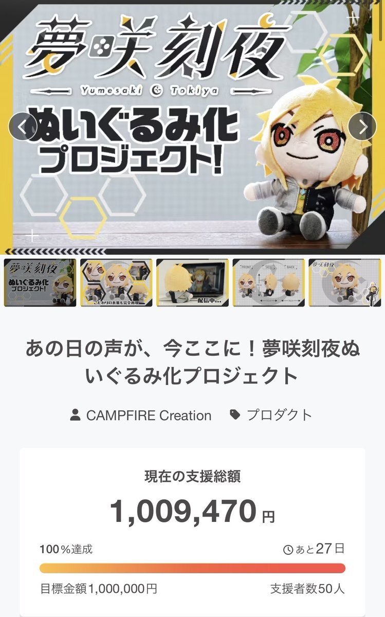 夢咲刻夜ぬいぐるみ化プロジェクト もうすぐ目標達成! このプロジェクトを応援しています!! #ゆめがさくとき #クラウドファンディングCAMPFIRE camp-fire.jp/projects/88404… @campfirejpから