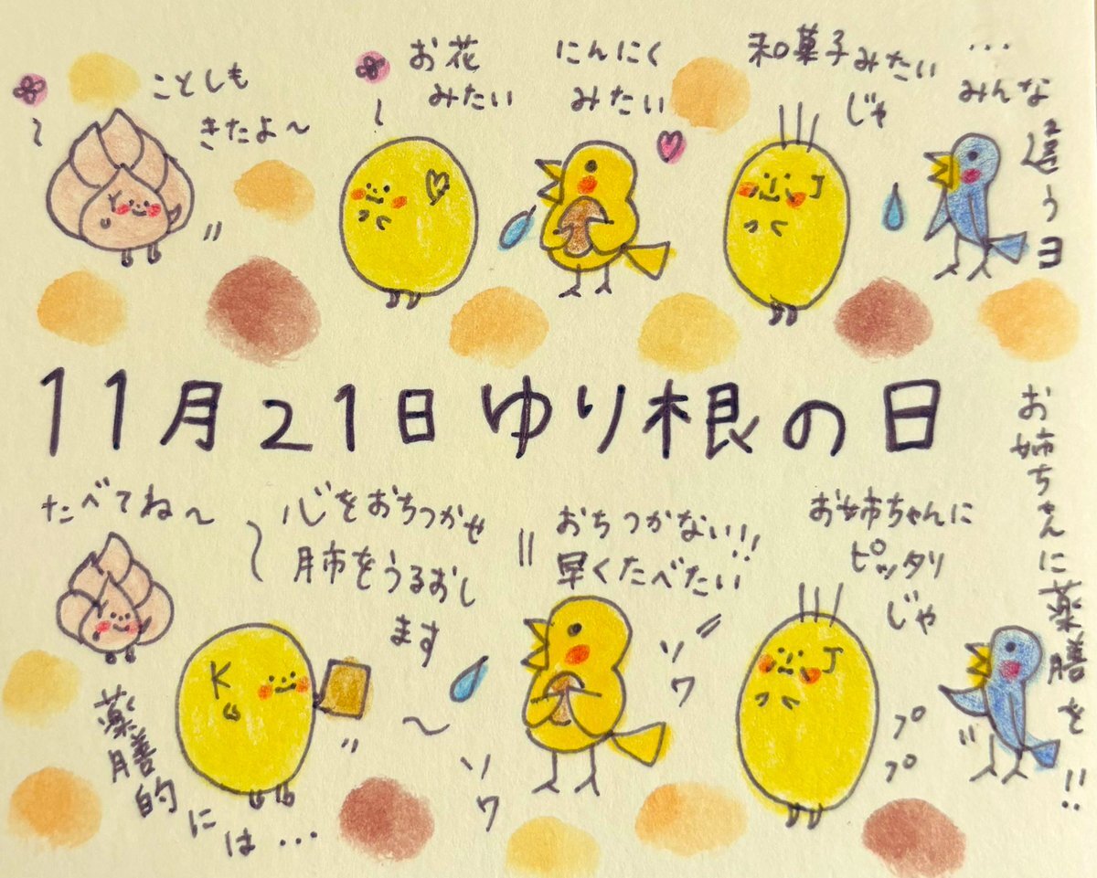 #11月21日 #ゆり根の日 ゆり根って ホクホクして美味しいですよね🤤 🐦お姉ちゃんに薬膳を‼︎ #fabercastel #色鉛筆イラスト #絵描きになりたいヨガインストラクター pic.x.com/Jf066fHEfS