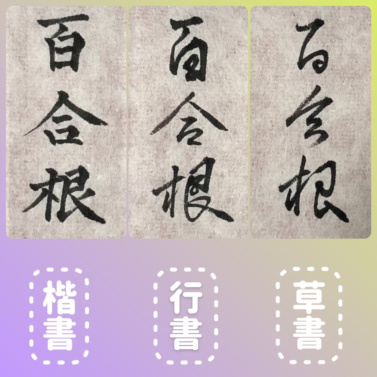 本日は #ゆり根の日 ということで #百合根 を三書体で書いてみました。 #ツっちゃんの手書き筆文字 #手書き #筆文字 #書道 #shodo #calligraphy #書写 #楷書 #行書 #草書 pic.x.com/FFhRNI0Qco