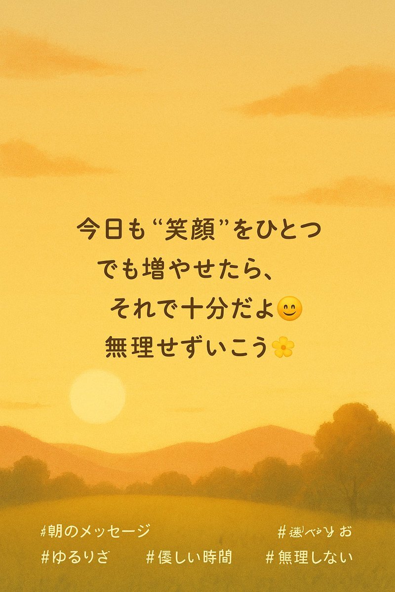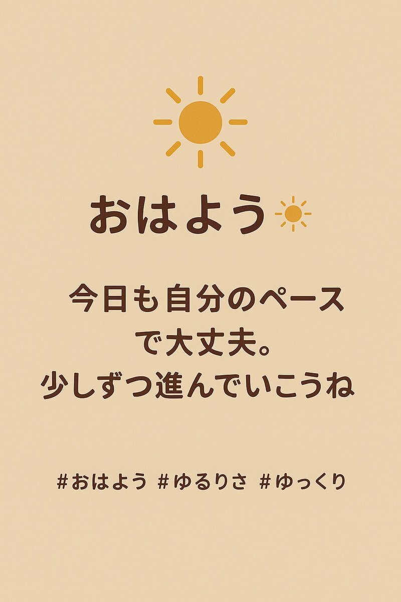 おはようございます☕️ うまくいかない日があっても、 少しずつ前に進めている自分を ちゃんと褒めてあげてくださいね。 今日も無理のない一歩で大丈夫。 ゆるりと、あなたのペースで🍃 #おはよう #優しい時間 #ゆるりさ pic.x.com/HzPNxZhrto