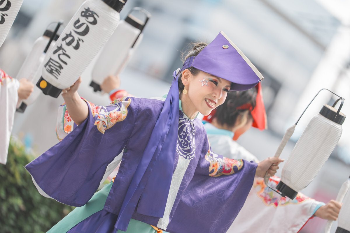 YouTubeチェックin #第25回富山のよさこい祭り #よさこい塾・ありがた屋 #富山城址公園 にて手を下に180度したり上げたりよさこい節に合わせながらの振り付けがよく、「はっ!」に合わせながらの振り付けに手を広げたり手を伸ばしながら回るシーンに「よさこい~」に合わせながらの振り付けも
