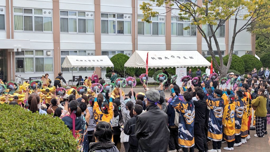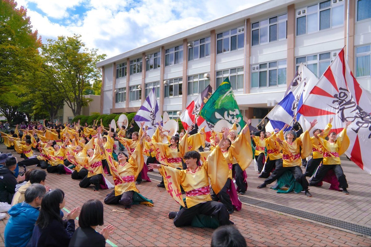 本日10月19日(日)は秋田大学で行われた #ヤートセ秋田祭in秋大祭 に参加し、19代目 #よさとせ歌舞輝 の皆さんのラストに華を添えさせていただきました🌸 今年初の秋田での演舞ということでしたが、全力のあどはだりと南中ソーランはいかがでしたか? 会場の皆さんと円陣ができて楽しかったです🎶 pic.x.com/9B33i8MxDl