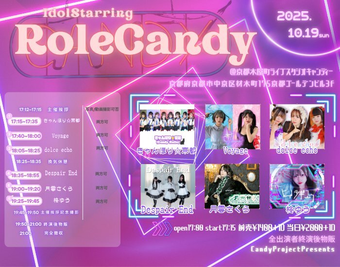 🍬きゃんほり☆京都Liveinfo🍬 【IdolStarringRoleCandy】 🍂推しの秋🍂 2025年10月19日(日) 17:00開場 /17:15開演 ライブスタジオキャンディー 予約¥1,400/当日¥2,000 (別途1D600円) #きゃんほりスケジュール