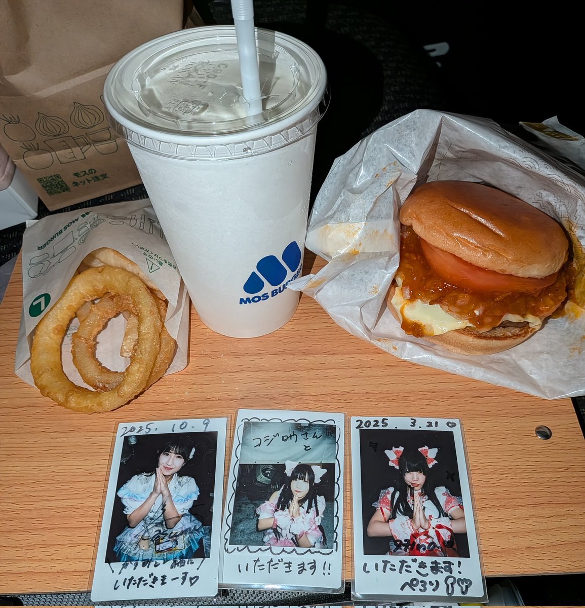今日・明日、休み(^_^)ノ 1日寝て過ごしたので・・・ ちょっと出掛け?に、モスバーガー🍔に(^_^)ゞ 限定メニューにせず(次行く時に?)、モスチーズバーガーにオニポテ・バニラシェイク(Mサイズ)のセットで注文(^_^)b いただきます(〃'▽'〃) #よしよしかすみちゃん #西野萌夏 #双葉ひな pic.x.com/UwZbVnigtZ