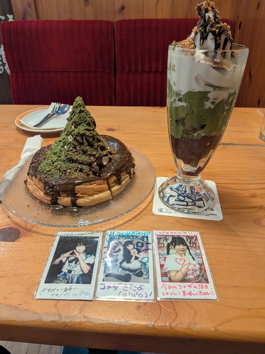 土曜日だけど、ライブも行ってないので・・・久しぶりにコメダ珈琲 竹の山店へやってきた(^_^)ノ 期間限定のシロノワール ブラックモンブランとブラックモンブランパフェ(どちらも-宇治抹茶仕立て-)を注文(^_^)b 美味しくいただきます(〃'▽'〃) #よしよしかすみちゃん #今日のいちごん pic.x.com/jucNv60ENY