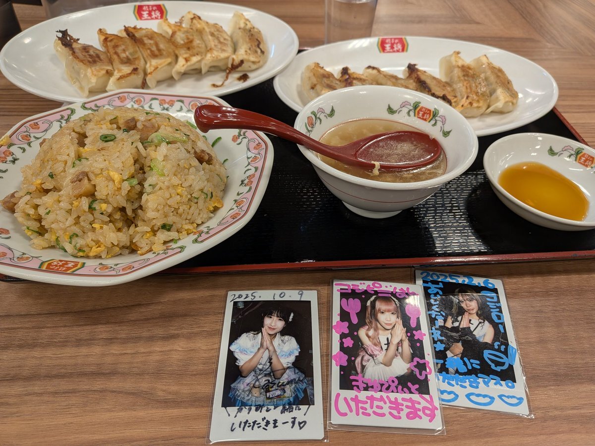ライブの後は、王将にやってきた(^_^)ノ 炒飯セットにしてにんにくなし生姜餃子に変更し、にんにくなし生姜餃子を追加注文(^_^)ゞ この前、炒飯食べたかったので、やっと?食べれるや(〃'▽'〃) #よしよしかすみちゃん (#^_^#)ヾ(^v^)k ヨシヨシ #きゆぴぃ参上 pic.x.com/skB3FiMy96