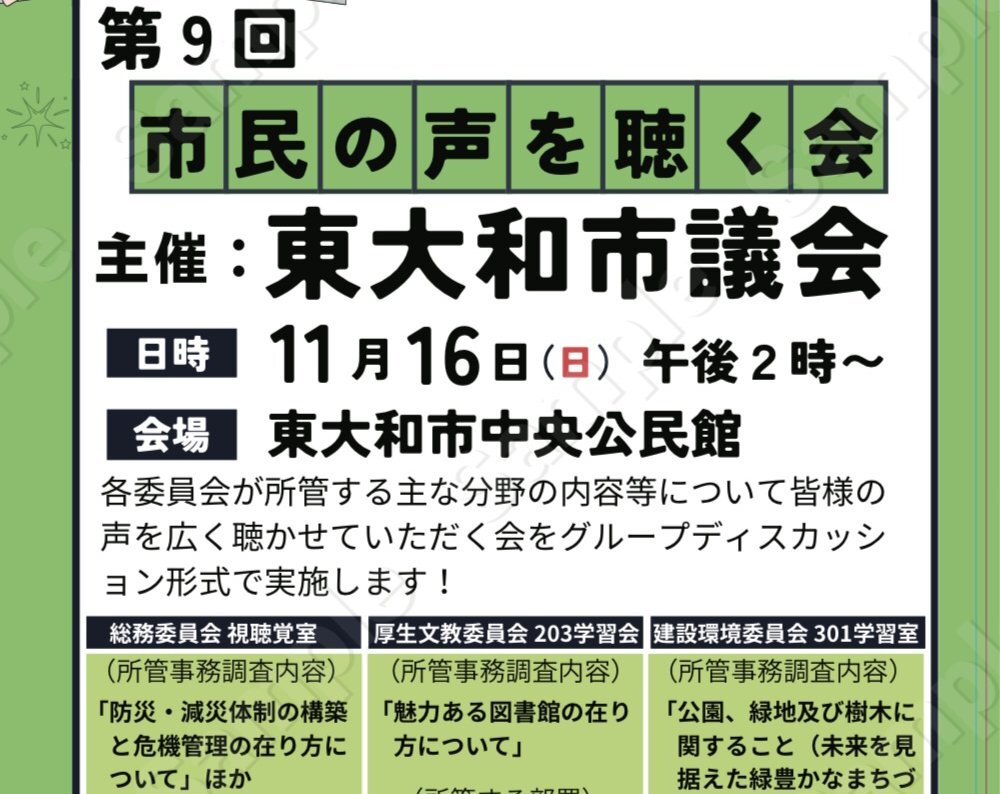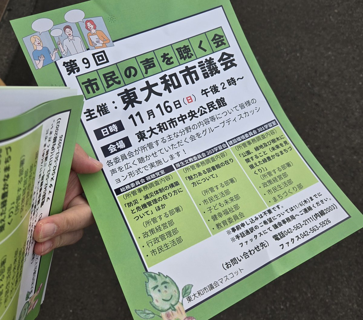 東大和市議会第9回市民の声を聴く会が令和7年11月16日に開催されます。いよいよ明日になりました。市民の声を聴く会をよろしくお願い致します。 #市民の声を聴く会 #東大和市議会 #第9回 #市議会議員 #よろしくお願い致します pic.x.com/ef2XqD0E2u