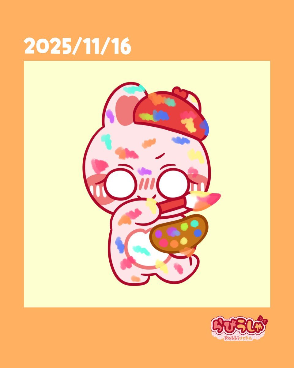 いい色の日だって🎨🌈 らびうしゃもカラフルな画家さんにだいへんしん🎶 #らびうしゃといっしょ #いい色の日 pic.x.com/8SlyrE4TPo