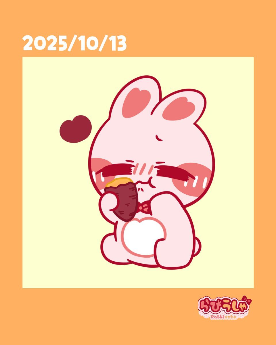 今日はさつまいもの日🍠💜 いっぱい食べたらおなかがぷっぷくぷーになるね🎶 #らびうしゃといっしょ #毎日投稿 #さつまいもの日 pic.x.com/v9YKCSnETO