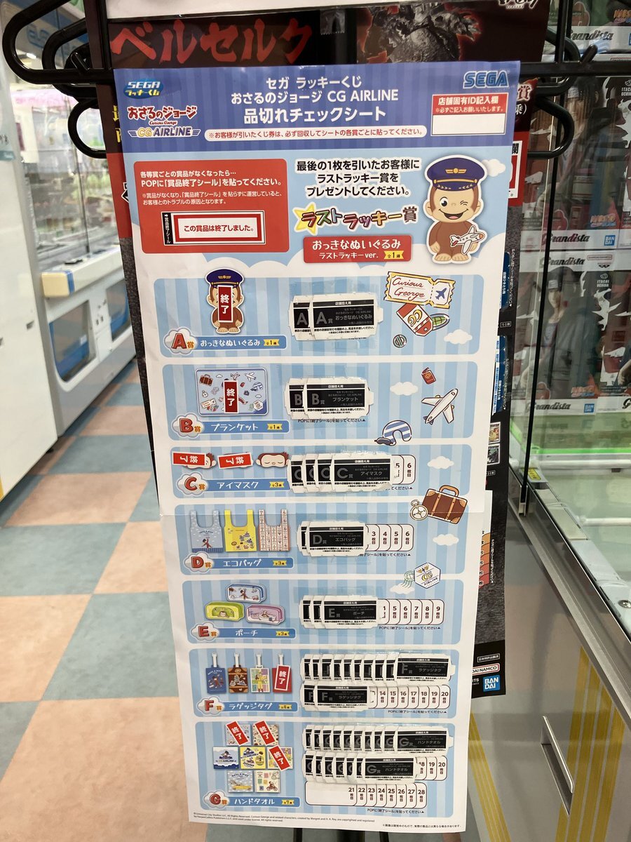 SEGAラッキーくじ 『おさるのジョージ』 現在の販売状況です‼️ 皆様のご来店お待ちしております‼️ #一番くじ  #ゲームセンター #らぶふらっと新市街店 pic.x.com/1AZ2fDEn3i