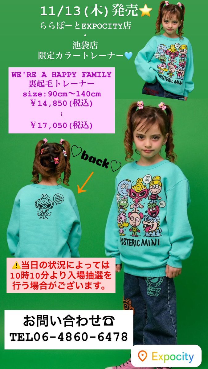 🎡ららぽーとエキスポシティ店🎡 11/6(木)発売✨ 池袋店・EXPO店限定カラートレーナー♡ size:80/90cm‼️ お問い合わせはこちら ☎️06-4860-6478 instagram.com/hystericmini_s hysteric-mini.com #ヒステリックミニ #hysmini #ヒスミニ #hystericmini #黑超奶嘴 #黑超 #ららぽーとエキスポシティ pic.x.com/MGAFoq2BtN