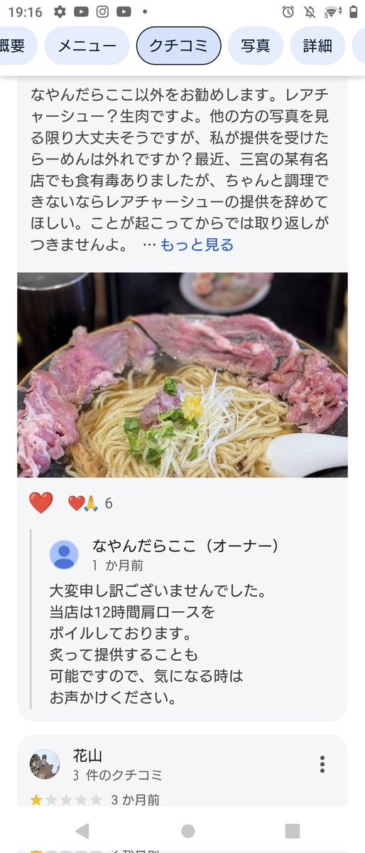 なやんだらここ 加古川のラーメン屋。 まだこんなん出してる。 レアチャーシュー? 低温調理? ピンクなら火はとおってる。 赤でしょ?ダメだよ。 1枚目先週。 2枚目。3ヶ月前。 #なやんだらここ #生肉提供ダメ #食の安全を守りたい #らーめん好きと繋がりたい #兵庫県らーめん #らーめん pic.x.com/4zuDyEs7dd