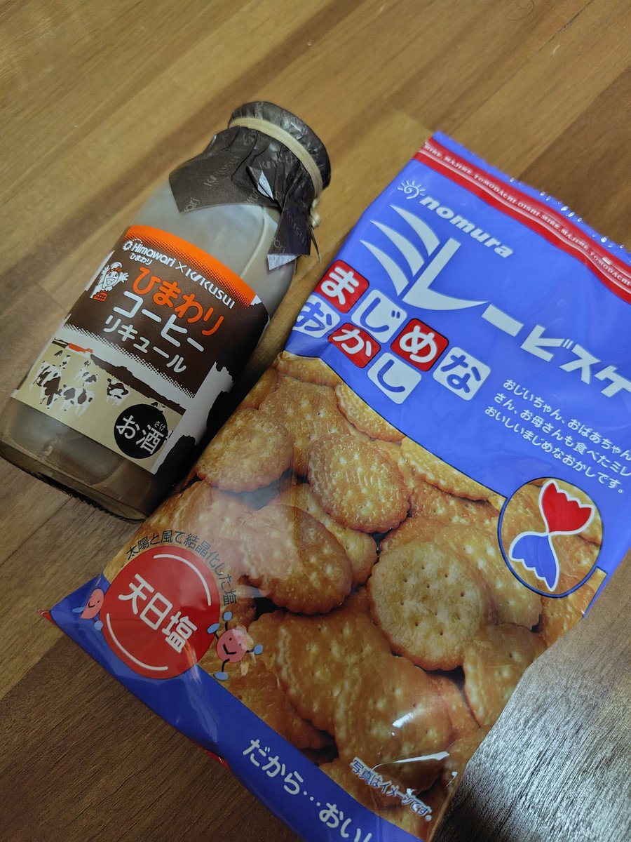 今日は家に帰ったら カラオケオフのときにもっすんさんにもらったひまわりコーヒーのリキュールと ミレービスケットで1杯やるとあらかじめ決めていたのだ! #りさちりさーちして pic.x.com/JG6mppv17b