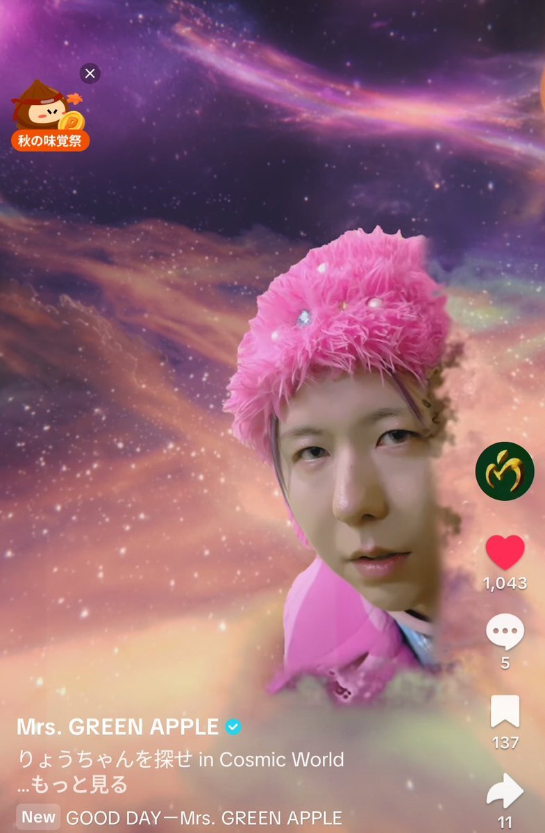 返信先:@AORINGOHUZIN出たぁー! CG編でもありなんだ! もー、これレギュラーで🤣 次のパターン予想もしちゃうよ😁 はっ! もし次の MVとしたら、来年?!😳! 改めてフェーズ2の締めくくりなんだぁー😭✨ 勝手に妄想突っ走り💦 #りょうちゃんを探せ #MrsGREENAPPLE #GOODDAY