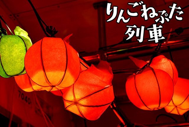 秋の弘前の風物詩といえば… #大鰐線 の #りんごねぷた列車 休みの日はりんごねぷたの灯りだけで、りんご畑の中を旧7000系で走る、なんとも幻想的な列車。りんごねぷたも大小、赤、緑などこだわっていて一個一個見るのも楽しいものです pic.x.com/YI0d8BsGyP