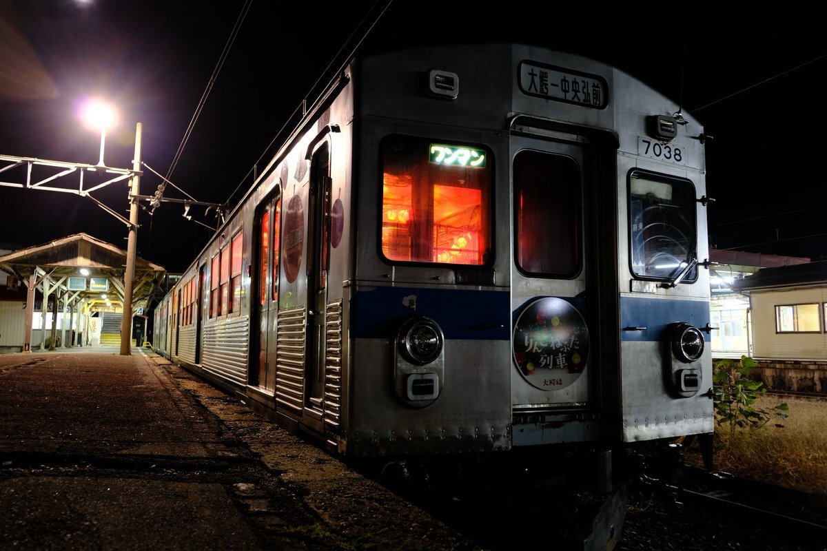 前回はタイミングを逸しましたが、今回は上手くライトアップの日に合いました。 #弘南鉄道 #大鰐線 の #りんごねぷた列車 に乗ってきました。(2025/11/2) 結構混んでいて(失礼)、撮影するのが大変でした。 観光客の立場ですが、これで運行休止とか残念です(T_T) pic.x.com/I3jmOGDh9r x.com/halcasky/statu…