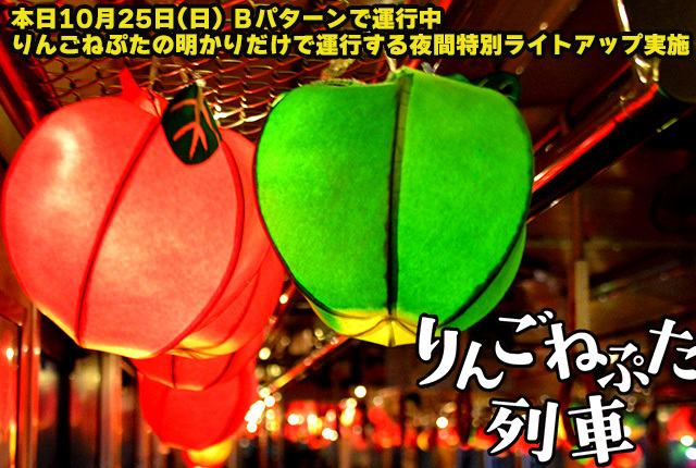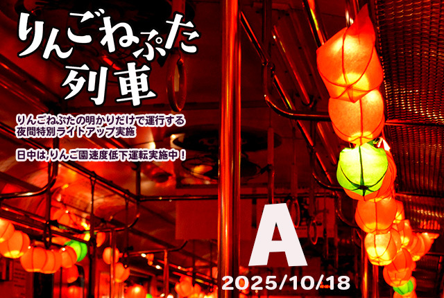 弘南鉄道大鰐線 #りんごねぷた列車 本日10月26日(日) Bパターンでリンゴ揺れ揺れ運行中 konantetsudo.jp/2025/08/22/app… 今夜も、りんごねぷたの明かりだけで運行する夜間特別ライトアップ実施致します 中央弘前発大鰐行 17:30 19:30 21:30 大鰐発中央弘前行 18:30 20:30 pic.x.com/8jiu4Bw1F0