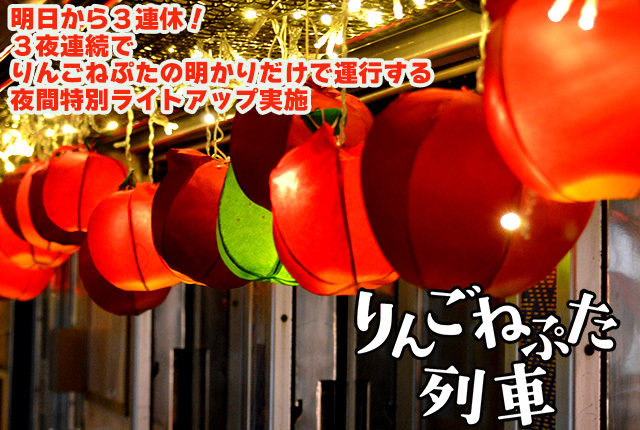 明日から3連休!!! 弘南鉄道大鰐線 #りんごねぷた列車 11月1日(土)2日(日)3日(月祝) 3夜連続りんごねぷたの明かりだけで、運行する夜間特別ライトアップ実施致します! konantetsudo.jp/2025/08/22/app… りんごねぷた列車の運行は11月30日までとなります 皆様のご乗車お待ちしております!!! pic.x.com/8FFunZ3pBU