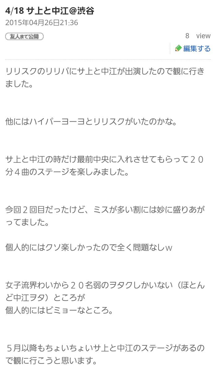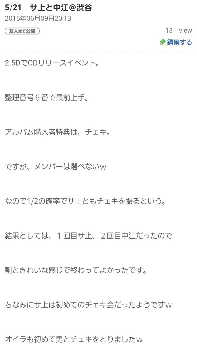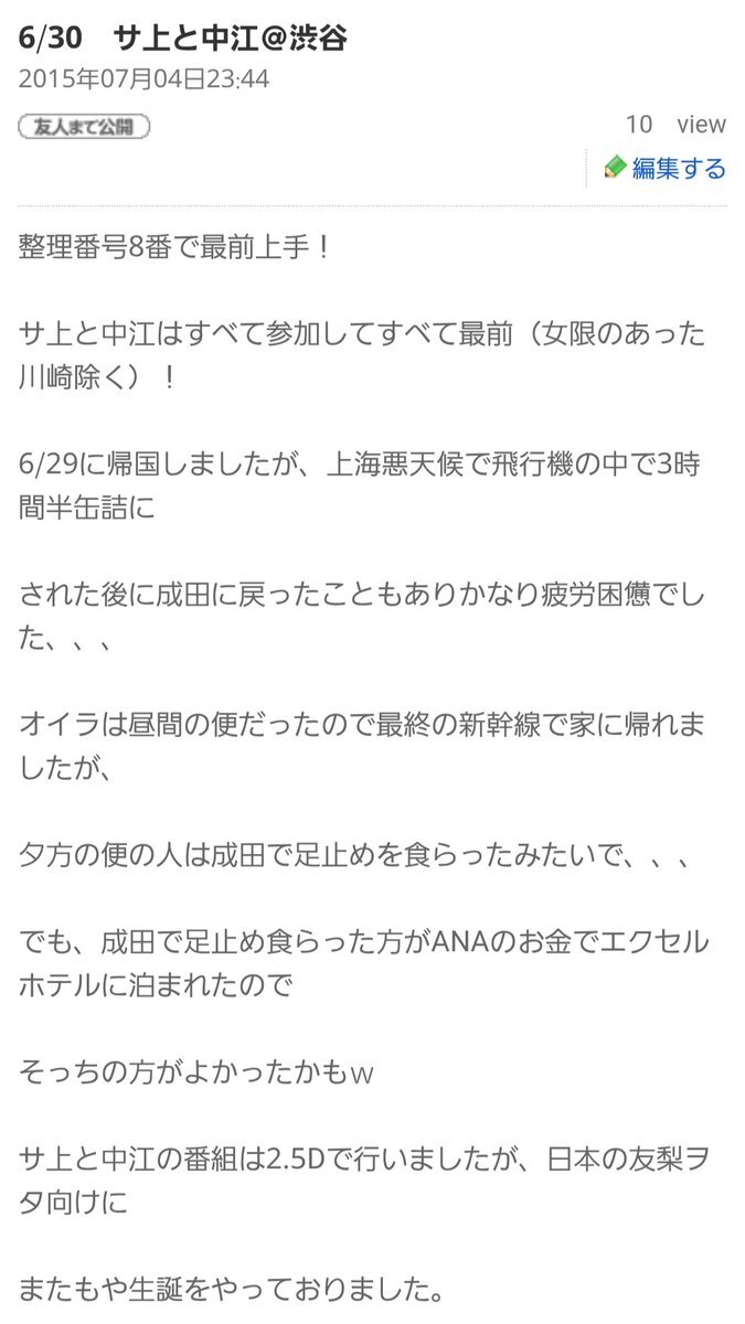 #ろいずのつぶや記 2015.6.30【東京】サ上と中江の続・青春日記 ~マイメン100人できるかな?~ 主催: 2.5D 生誕当日が遠いところで、そこに行けなかったヲタクが後日東京で生誕イベントっぽいことやるのは、別に今回に限った話ではないけど、なんだかなーって思ってしまう。 pic.x.com/rtC4ZyDYgc