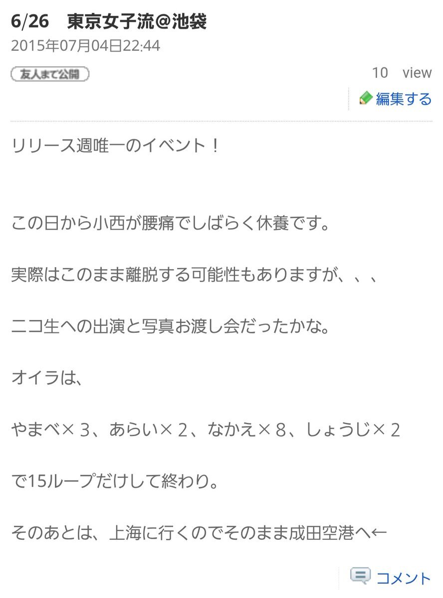 #ろいずのつぶや記 2015.6.26【東京】19thシングル「Never ever」発売記念 ニコニコ本社トークライブ&特典会(and リミックスコンテスト結果発表) この時の懸念通り小西はこのまま離脱してしまいました。。。 波乱の週末の記憶。 pic.x.com/TwjqlBLuco