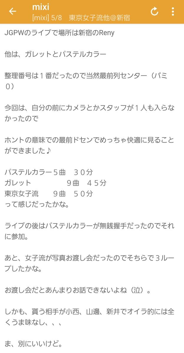 #ろいずのつぶや記 2015.5.8【東京】J-GIRL POP WAVE -LIVE 20150508- 会場:新宿ReNY 出演:東京女子流、GALETTe、PASTEL CALLA JGPW4ヶ月連続ライブの1回目! 新宿レニーも思い入れのあるハコのひとつよね! pic.x.com/s1pQyt59SF