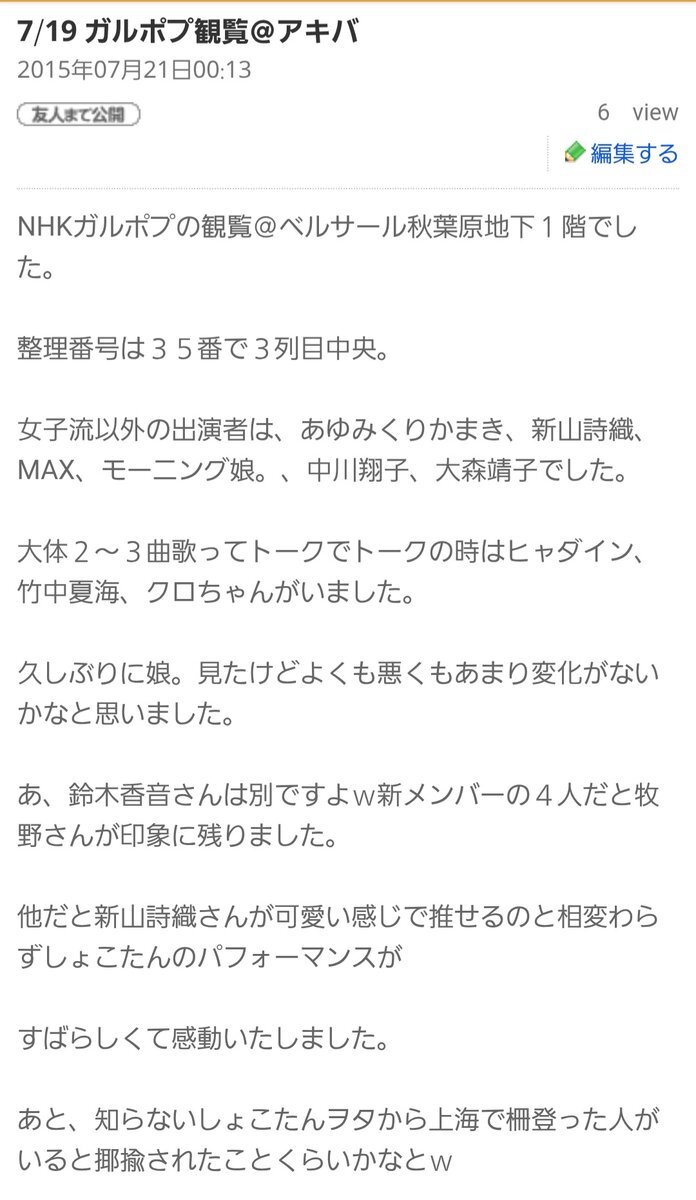 #ろいずのつぶや記 2015.7.19【東京】「ヒャダインpresents “ガルポプ!”夏の大感謝祭」 【会場】ベルサール秋葉原 【出演】〔パーソナリティー〕ヒャダイン(音楽クリエーター) 〔ゲスト〕中川翔子、モーニング娘。’15、大森靖子、あゆみくりかまき、新山詩織、東京女子流 ほか pic.x.com/RLfEy9Bb84