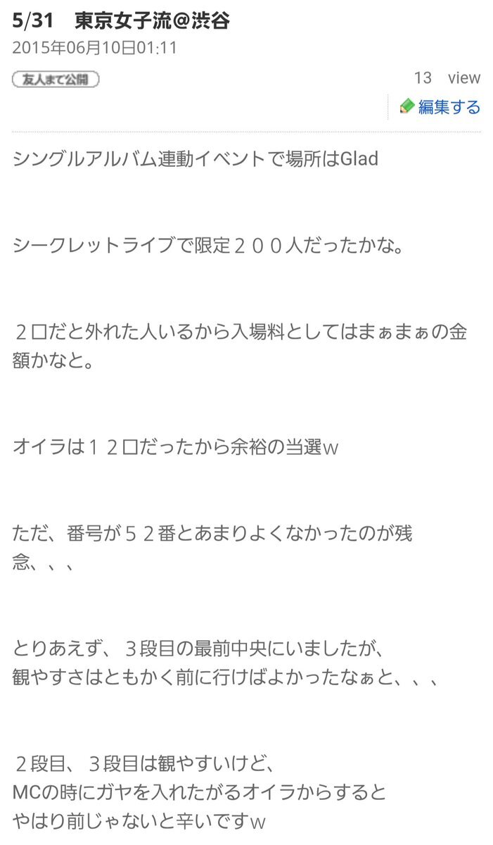 #ろいずのつぶや記 2015.5.31【東京】シングルアルバム連動イベント(シークレットライブ) 会場 glad Gladも思い入れのある会場のひとつ。何度かここの最前で女子流みれたのはよき思い出です。 pic.x.com/pkLEl7LnSj