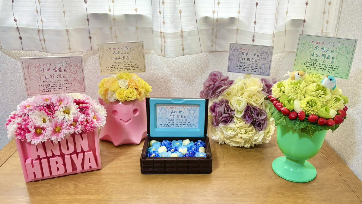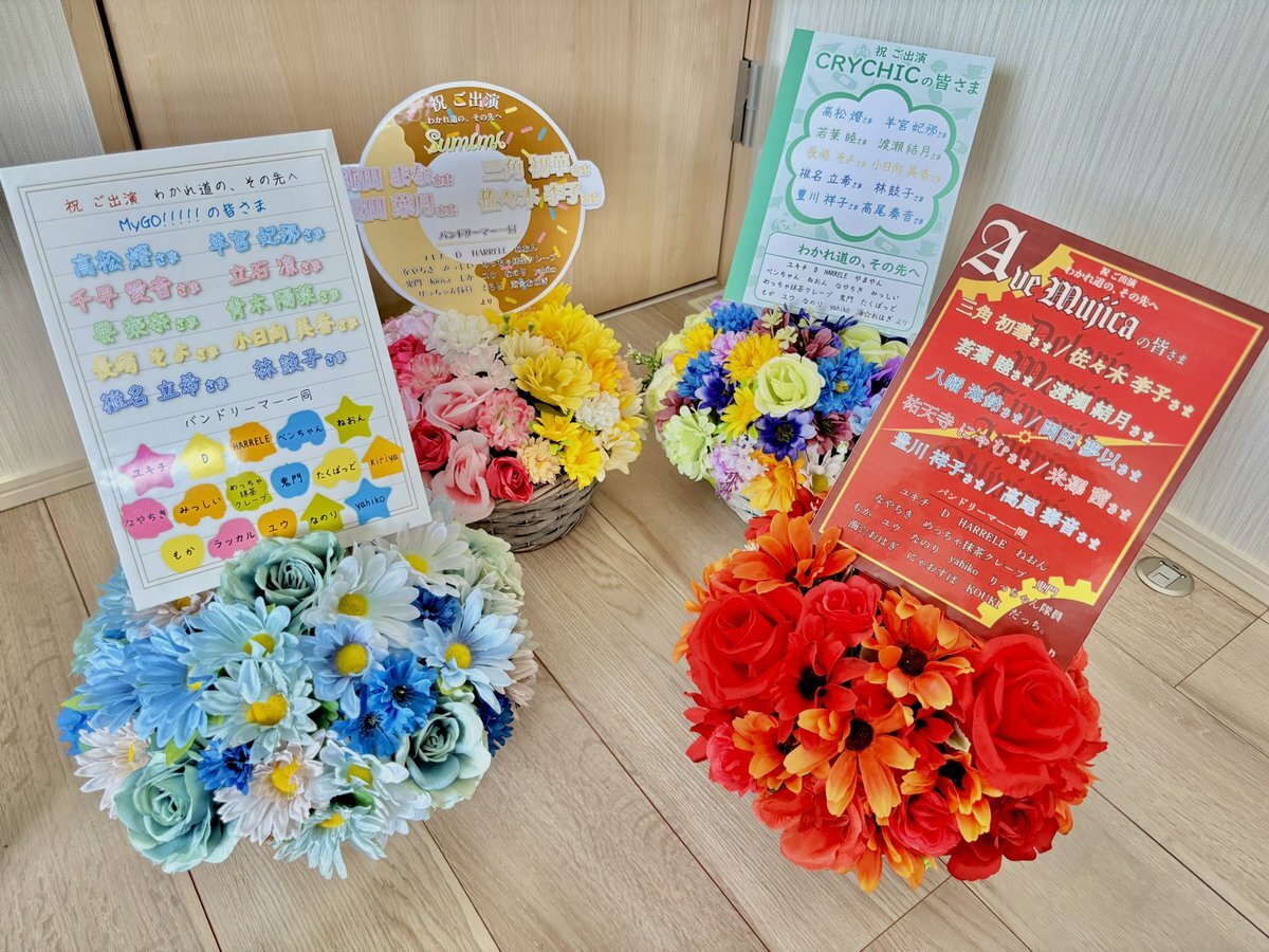 主催者がどんな人かわからない方へ。 今までバンドリ声優さん宛に制作・お届けした楽屋花の一覧です💐 左上から順に #ポピパ 河口湖→各メンバー宛 #MyGO 7thライブ→各メンバー宛 #わかれ道のその先へ →各バンド宛 #MyGO Zeppツアー2025大阪→各メンバー宛 (下に続く) pic.x.com/FaSPEiy6nR