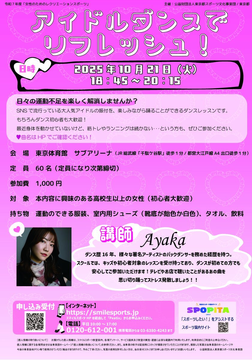 🌞#SPOPITAスタンプラリー 対象👟 10/21(火)に #東京体育館 で「アイドルダンスでリフレッシュ!」が開催🎉 今回は、#FRUITSZIPPER の「#わたしの一番かわいいところ」を踊るダンスレッスン🎵 #ダンス 初心者も大歓迎❗️❗️ 事前申込制!申込みはお早めに❗️❗️ 詳細は👇 spopita.jp/stamprally/eve… pic.x.com/G0qp3snaY1