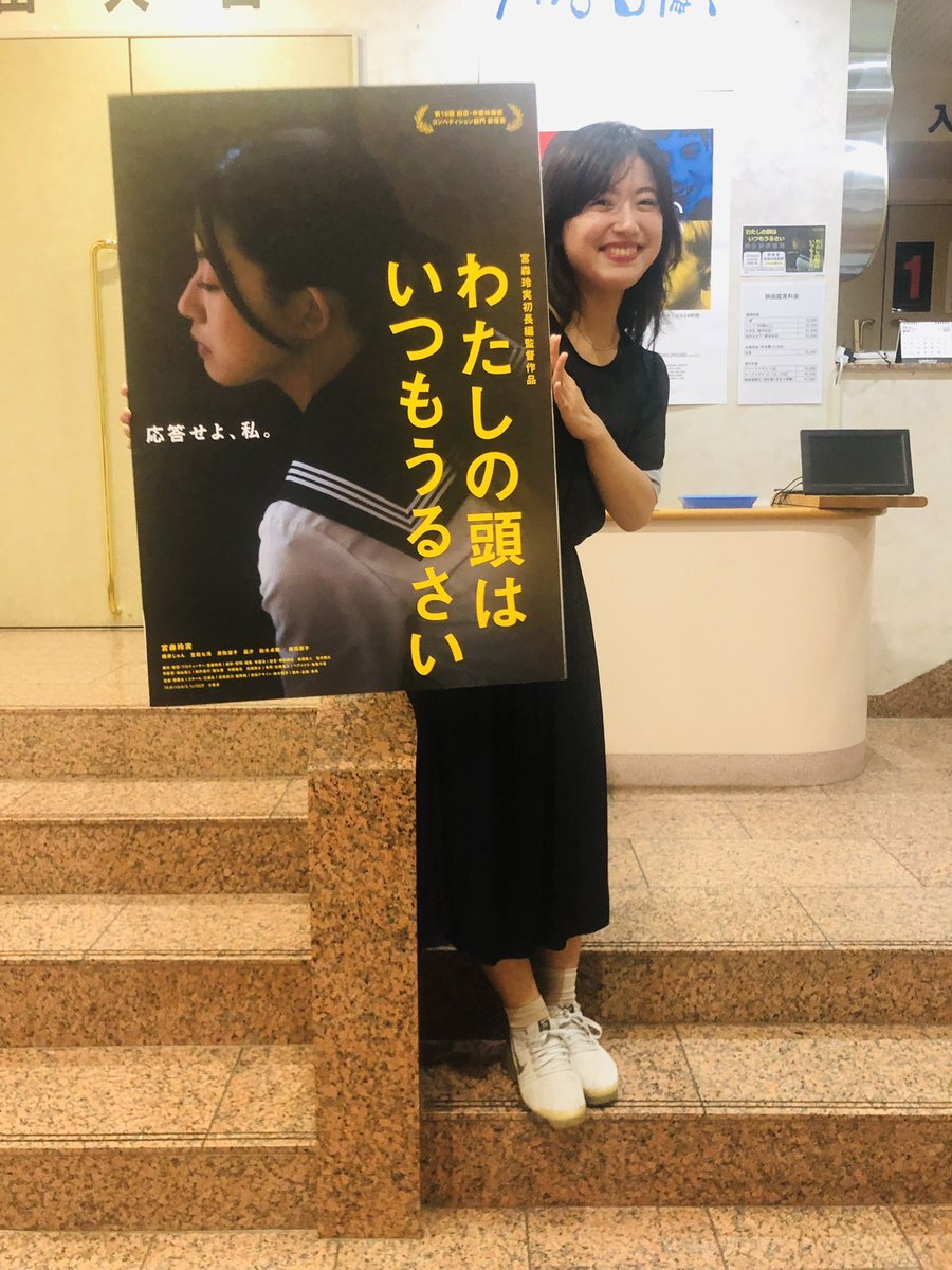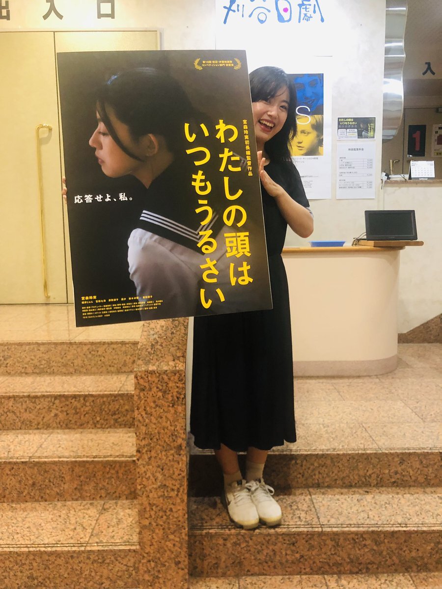 昨日、刈谷日劇で、わたしの頭はいつもうるさい、舞台挨拶で鑑賞。主演、監督、脚本、プロデューサーの宮森玲実さんの話も聞けました。映画は、上京して7年の25歳の主人公が夢を諦めて田舎に帰ろうとすると上京する時の18歳の主人公に叱咤激励される話で面白かったです。 #わたしの頭はいつもうるさい pic.x.com/len1msATf5