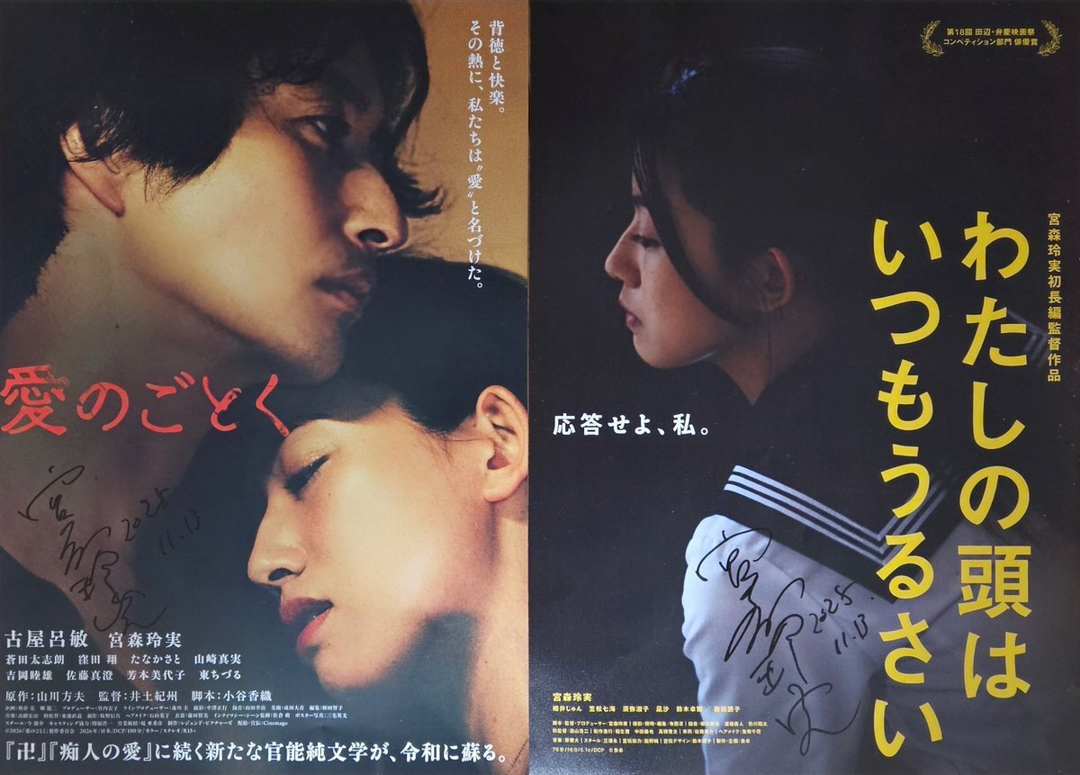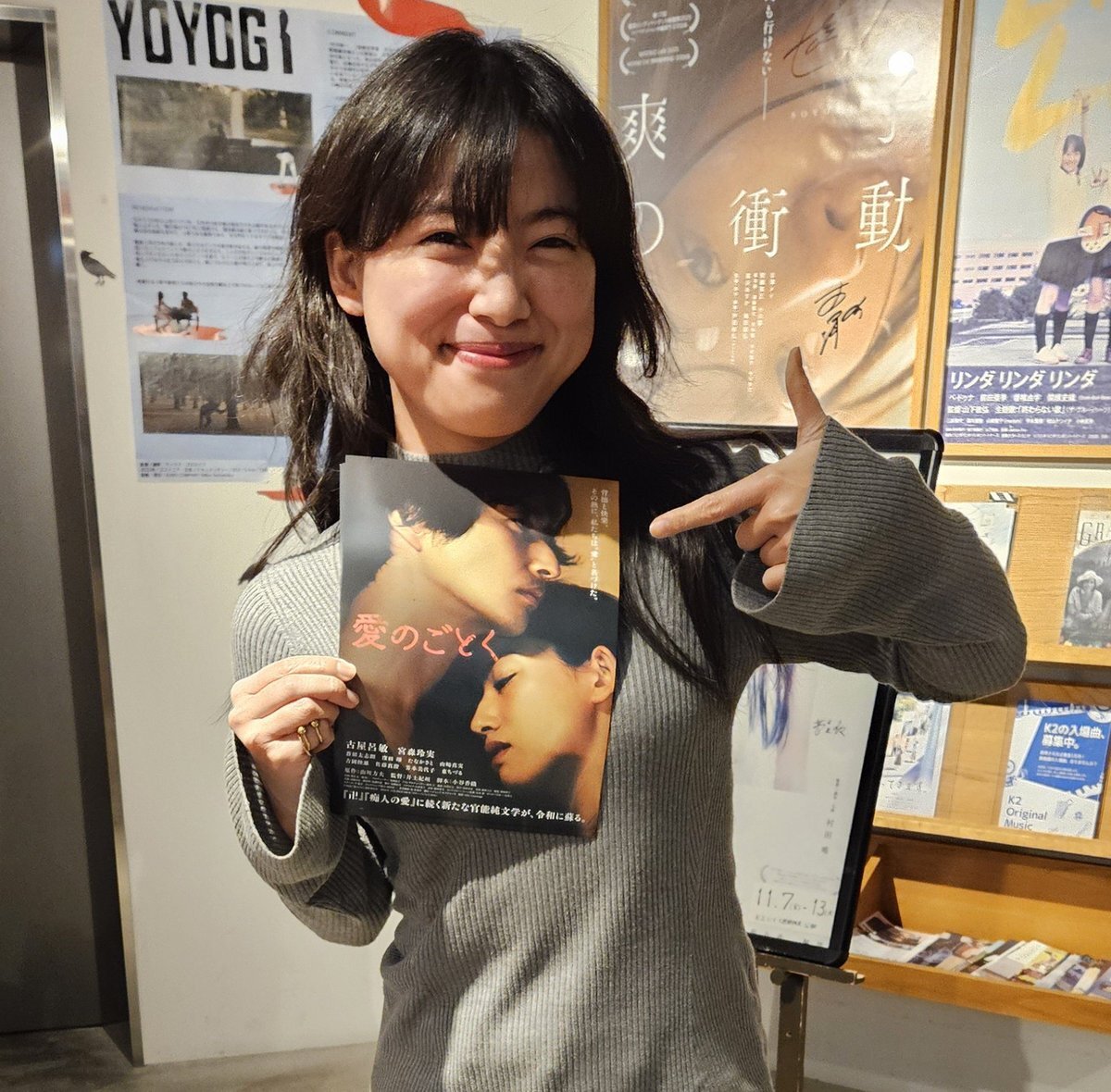 村田唯監督の『#密かな吐息』の舞台挨拶に登壇された宮森さんから来年1月23日に池袋新文芸坐で公開される主演映画『#愛のごとく』のチラシと素敵な笑顔をいただきました また、監督・主演の『#わたしの頭はいつもうるさい』は12月にユーロスペースでの公開も予定されているそうです 行かなきゃ💦 pic.x.com/MtsftGRvi3