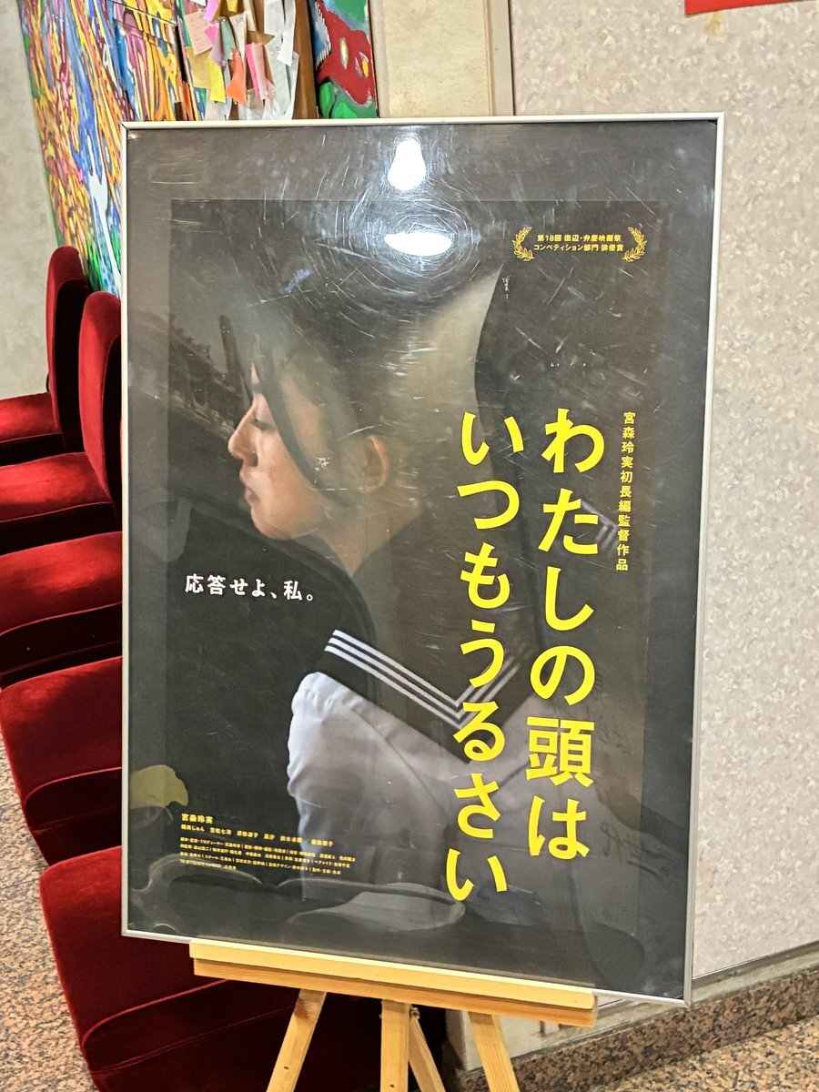 「わたしの頭はいつもうるさい」鑑賞。絵力抜群の刈谷日劇での舞台挨拶。撮影時の話も聞けて、東京で一花咲かせたいという内容なので、不特定多数が思っている思いだと思うし、田舎者のわたくしには刺さりました。 #わたしの頭はいつもうるさい #刈谷日劇 pic.x.com/TSE7VEZYaB