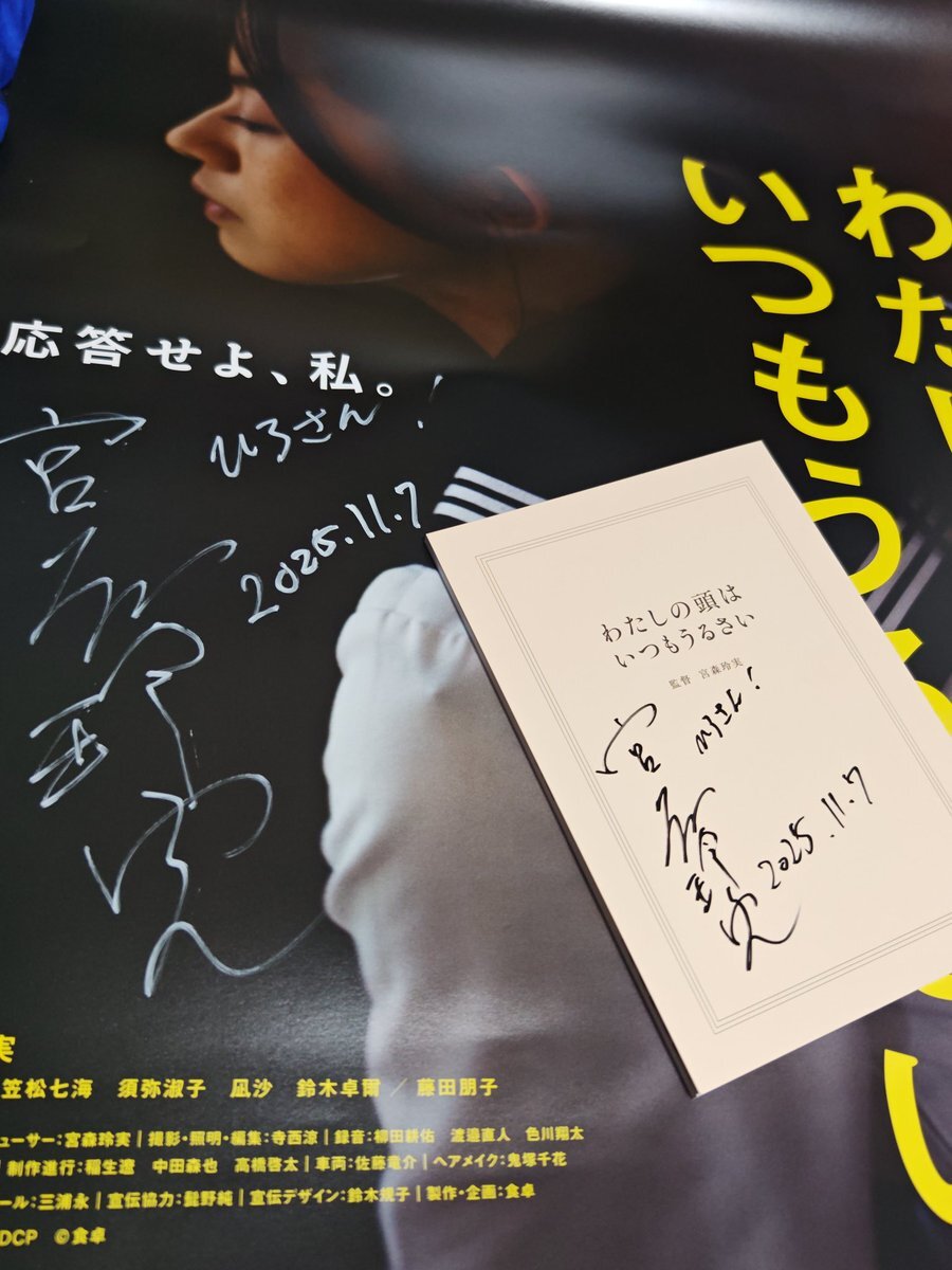 #わたしの頭はいつもうるさい#宮森玲実 監督の舞台挨拶回を #刈谷日劇 で観てきました! むちゃくちゃ面白かったです!! 藤田朋子さん演じるお母さんの笑顔で終わるところが良かったって、サインいただく時に監督にお話できたんだけど…緊張しすぎて声上擦ってたし顔見れなかった…😭 pic.x.com/SuvmrGWwDe