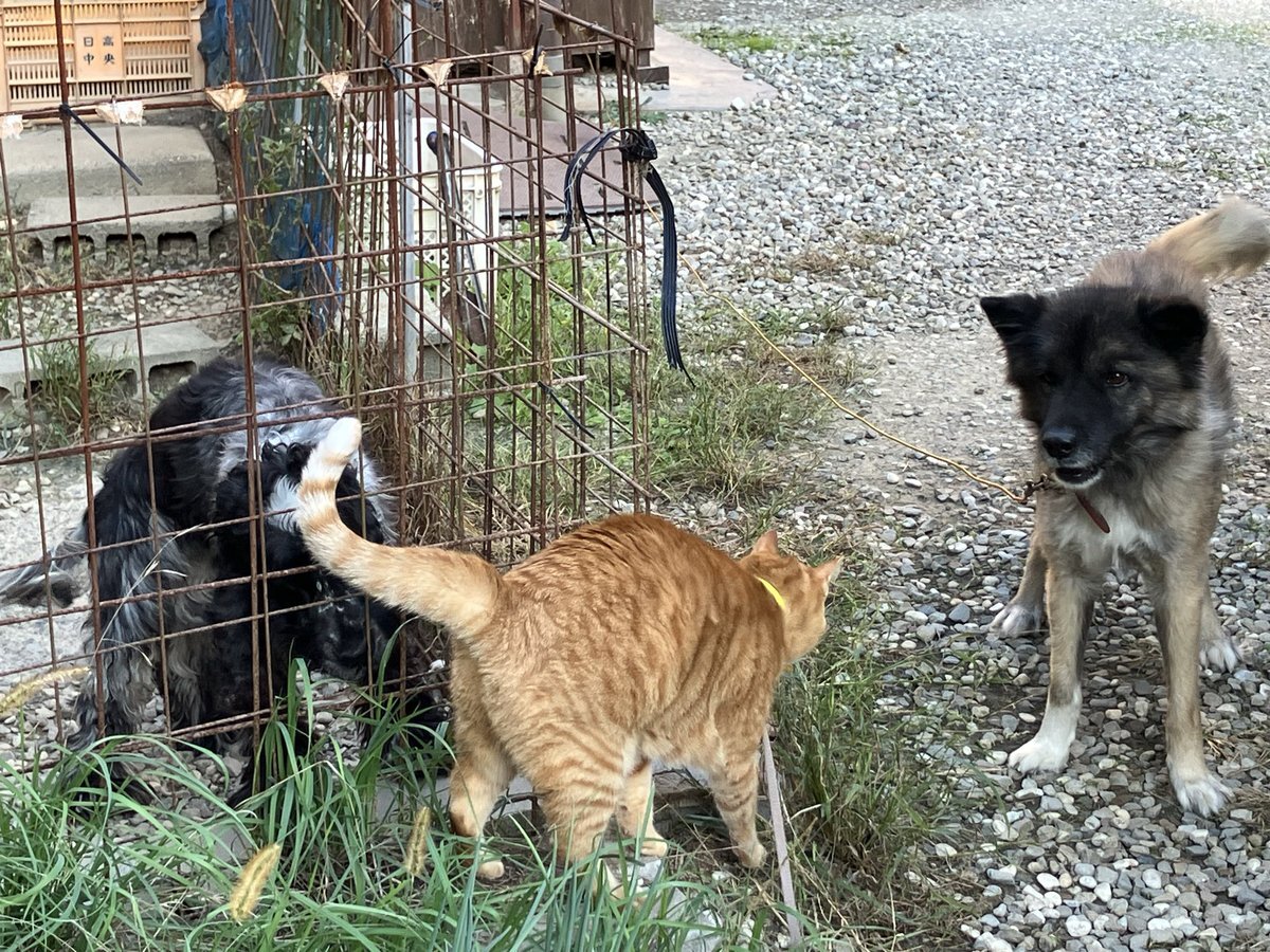 うには、わんこたちにも大人気😍←ロイもうにに優しいし、→不動は喜びの遠吠えしてますし💓 #わだま農園のねこ #わだま農園のいぬ pic.x.com/blJcRwRh4c