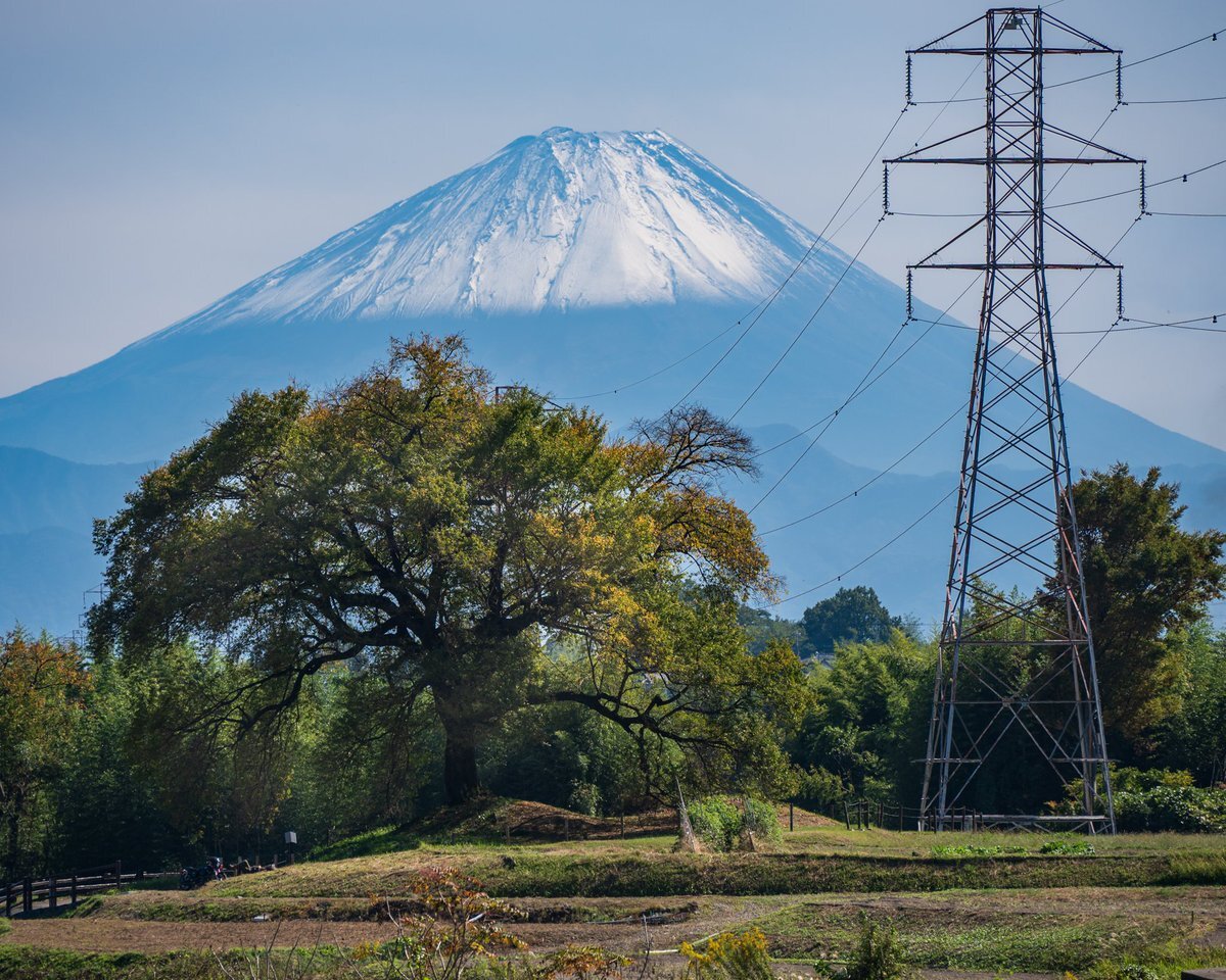 10/23 富士山初冠雪 黄葉したワニ塚の桜🌸越しに見えました 会社の昼休みに撮影 #富士山 #富士山初冠雪 #わに塚のサクラ pic.x.com/3DwNp60d3b