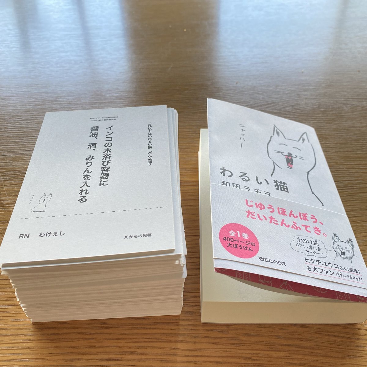 待ちに待ってた和田ラヂヲ先生の新刊をゲット 120%くつラヂヲ以来、約3年ぶりの新刊です 和田ラヂヲファンの皆さん、一緒に楽しみましよう #和田ラヂヲ #わるい猫 pic.x.com/4TclIOcVLm